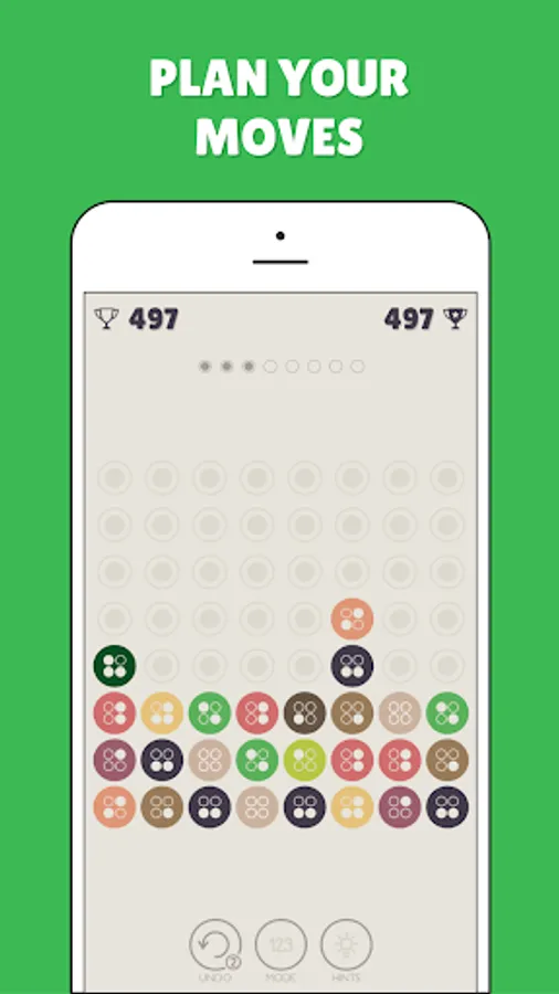 • Three difficulty levels, you can start the game from 2, 4 and 6 rows of dots.