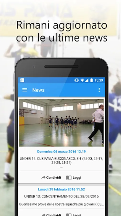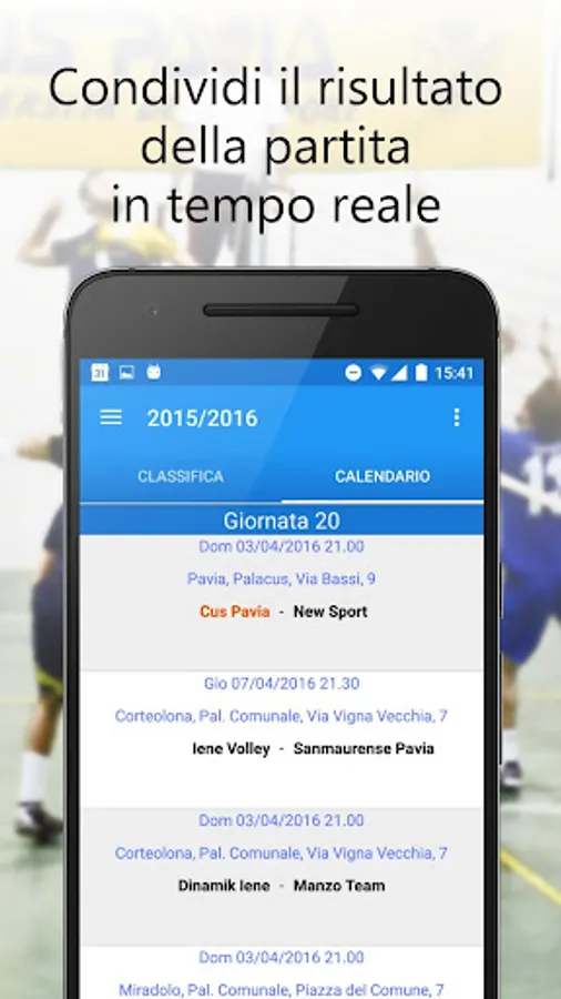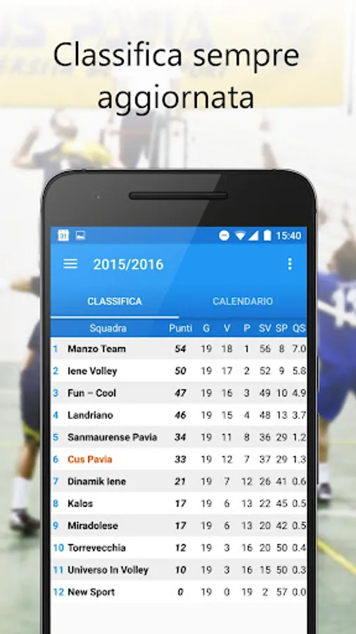 With this app you stay up to date with the results and CUS Pavia (Volleyball rankings).
