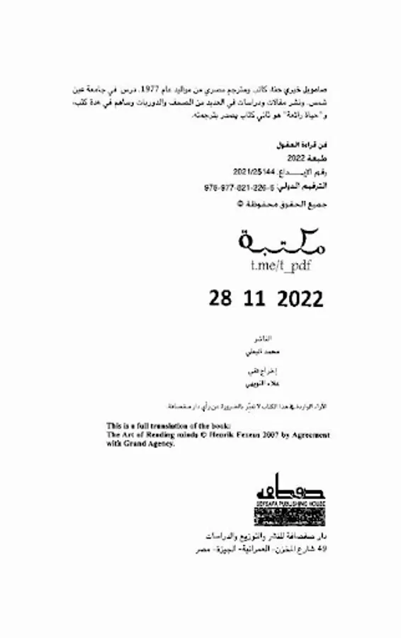 The book, The Art of Reading Minds, is a distinguished literary work that combines the splendor of narration with the depth of the idea. The Art of Mind Reading is a unique experience that takes you on a journey full of suspense and excitement. Through the book The Art of Reading Minds, you will enjoy immersing yourself in divergent events and diverse characters. The words of the book The Art of Reading Minds reflect the writer's ingenuity in crafting the story and expressing feelings in a beautiful and touching way. The Art of Mind Reading blends suspense and philosophy in an amazing way, playing with the minds of readers and capturing their hearts at the same time. The book The Art of Mind Reading offers a new approach to reading that makes you immerse yourself in its worlds and feel like you are a part of it. It is difficult to forget your experience with the book The Art of Reading Minds, as it leaves a deep mark and unforgettable details in your memory. On every page of The Art of Mind Reading book, you will feel like you are living an interesting and eventful time. At the conclusion of this wonderful journey, I wish you an enjoyable and inspiring reading with The Art of Mind Reading. Enjoy your adventure with this distinguished work of literature, and let The Art of Mind Reading capture your imagination and transport you to unforgettable worlds.