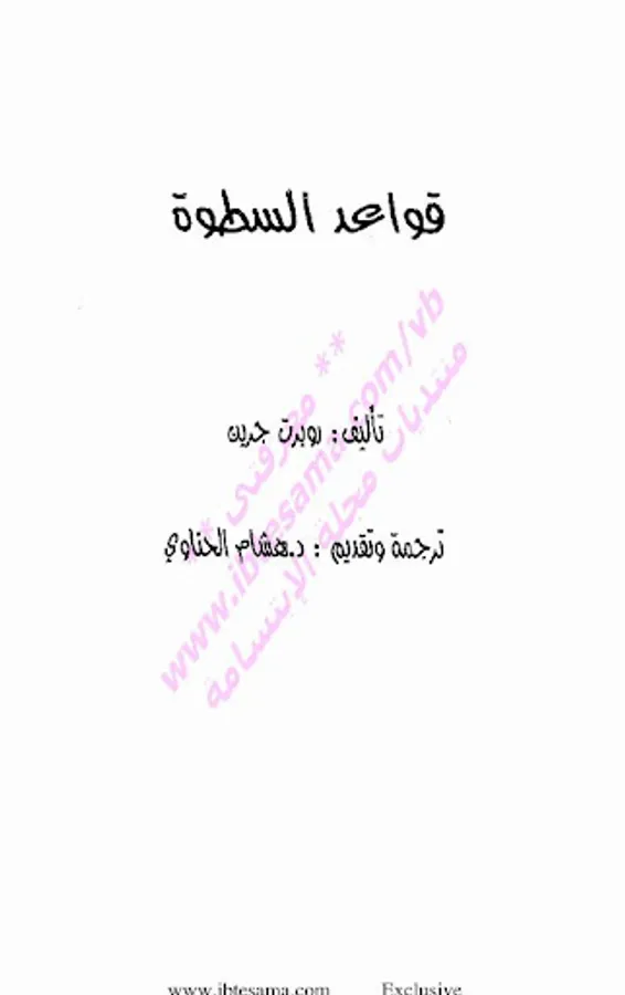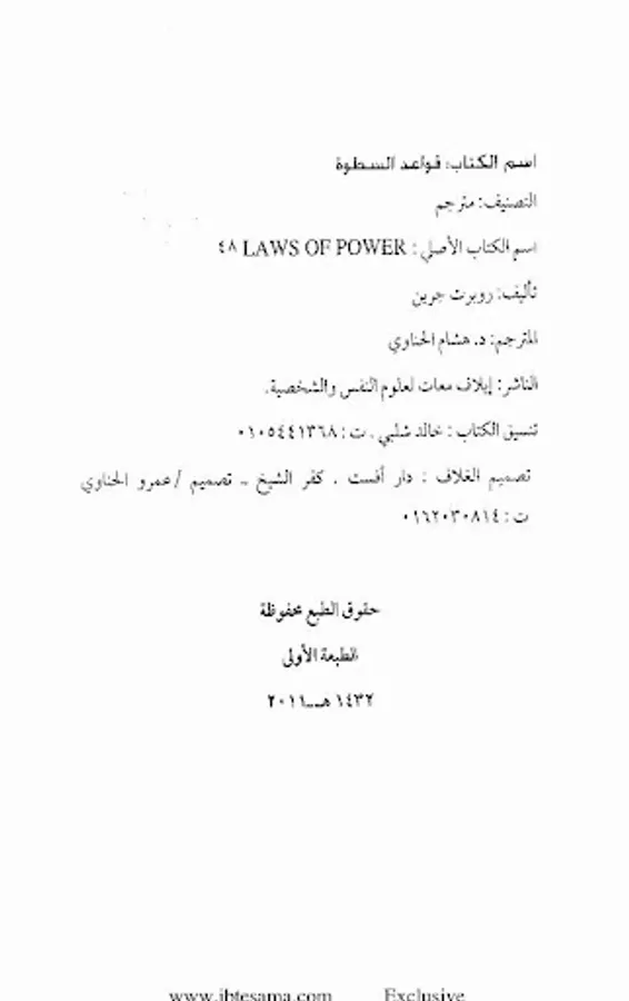 The book 48 Laws of Power is a distinguished literary work that combines the splendor of narration with the depth of the idea. The 48 Laws of Power book is a unique experience that takes you on a journey full of suspense and excitement. Through the book The 48 Laws of Power, you will enjoy immersing yourself in divergent events and diverse characters. The words of the book 48 Laws of Power reflect the writer's ingenuity in crafting the story and expressing feelings in a beautiful and effective way. The 48 Laws of Power blends suspense and philosophy in an amazing way, playing with the minds of readers and capturing their hearts at the same time. The book 48 Laws of Power offers a new approach to reading, making you immerse yourself in its worlds and feel as if you are a part of it. It is difficult to forget your experience with the 48 Laws of Power book, as it leaves a deep mark and unforgettable details in your memory. On every page of the 48 Laws of Power book, you will feel like you are living an interesting and eventful time. At the conclusion of this wonderful journey, I wish you an enjoyable and inspiring read with the book The 48 Laws of Power. Enjoy your adventure with this distinguished work of literature, and let the book 48 Laws of Power capture your imagination and transport you to unforgettable worlds.