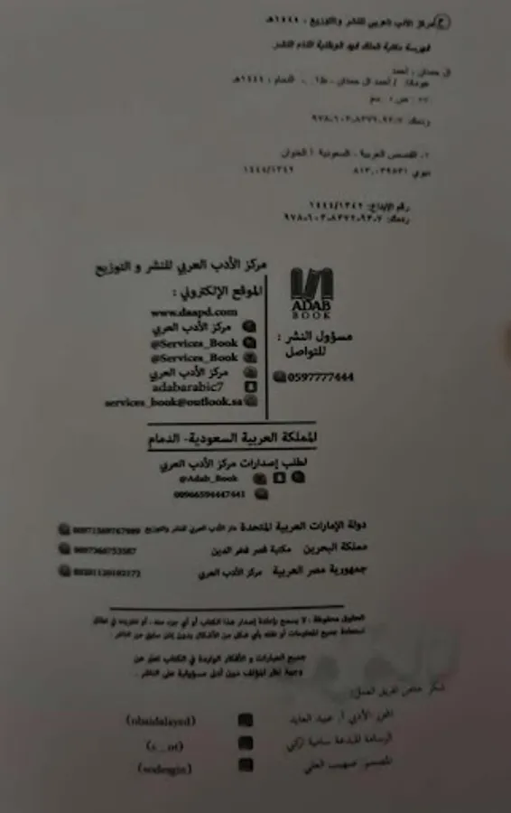 Jumana's novel is a distinguished literary work that combines the splendor of narration with the depth of the idea. Jumana's novel is a unique experience, as it takes you on a journey full of suspense and excitement. Through Jumana's novel, you will enjoy immersing yourself in divergent events and diverse characters. The words of Jumana's novel reflect the writer's ingenuity in crafting the story and expressing feelings in a beautiful and touching manner. Jumana's novel blends suspense and philosophy in an amazing way, as it manipulates the minds of readers and captures their hearts at the same time. Joumana's novel offers a new approach to reading that makes you immerse yourself in his worlds and feel like you are part of it. It is difficult to forget your experience with Jumana's novel, as it leaves a deep mark and unforgettable details in your memory. On every page of Joumana's novel, you will feel like you are living an interesting and eventful time. At the conclusion of this wonderful journey, I wish you an enjoyable and inspiring reading with Jumana's novel. Enjoy your adventure with this distinguished work of literature, and let Jumana's novel capture your imagination and transport you to unforgettable worlds.