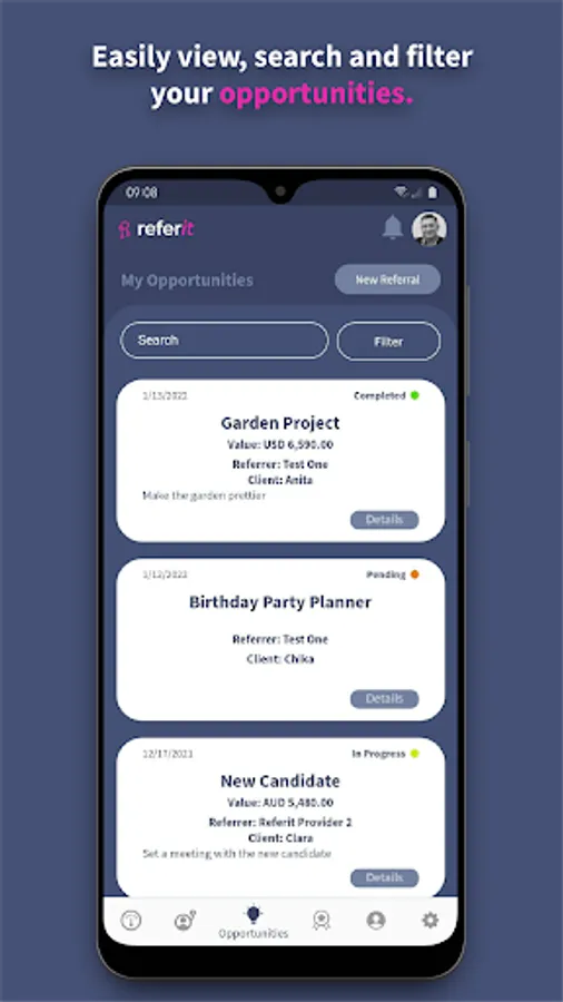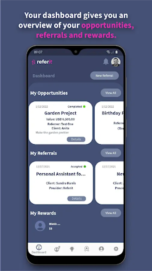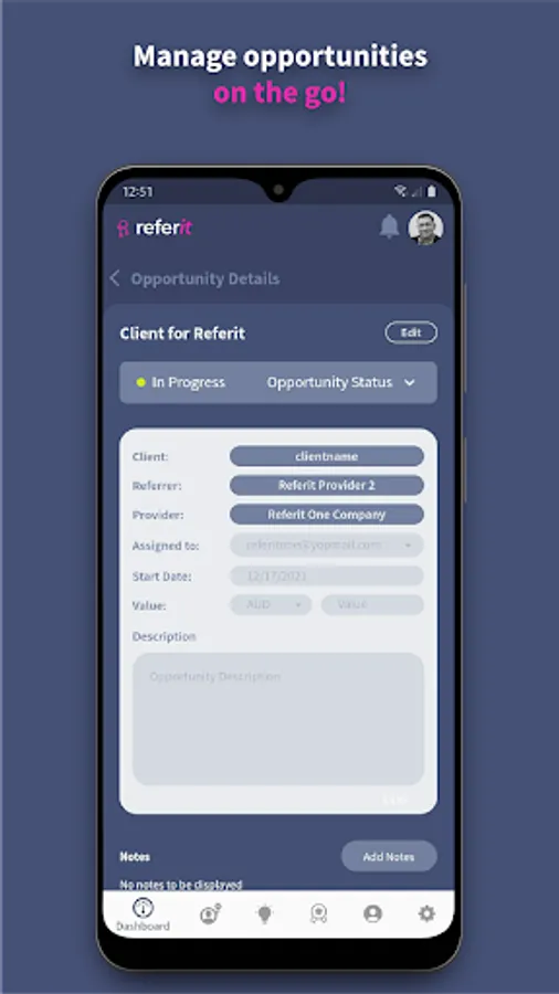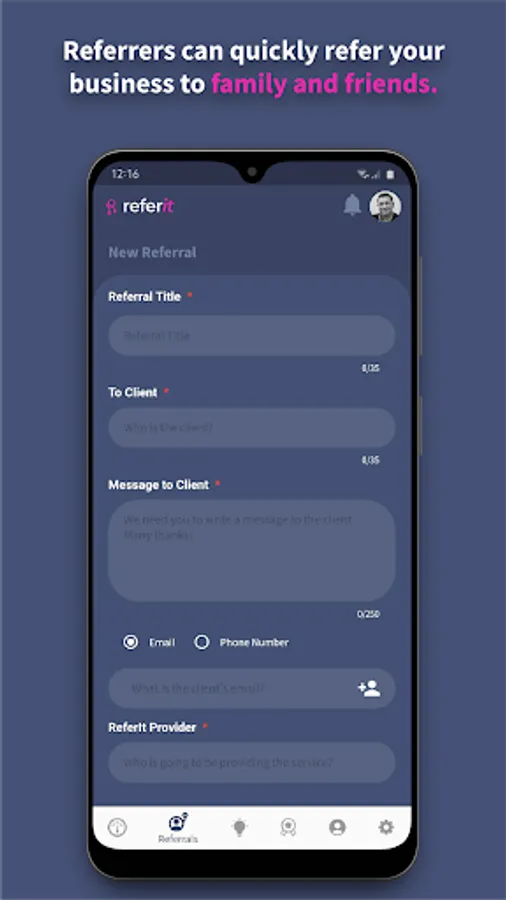 Gain, manage, and actualize customer referrals in one place. Do all of this with ease on any mobile device, or you can use Referit on the Web!
