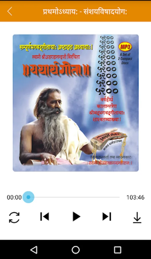 This App allows you to Listen, Read and Download MP3 and Book of Srimad Bhagavad Gita verse by verse with explanation in Sanskrit Language.