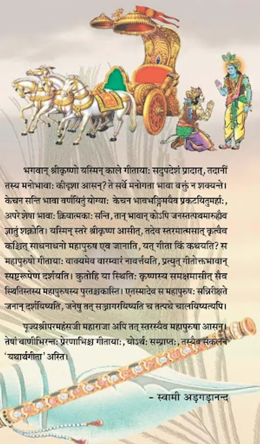 Rev. Shri Paramhansji Mahraj was also an enlightened teacher of such a level and the compilation of his words and blessings to grasp the inner feelings of the Gita itself is the 'Yatharth Geeta".