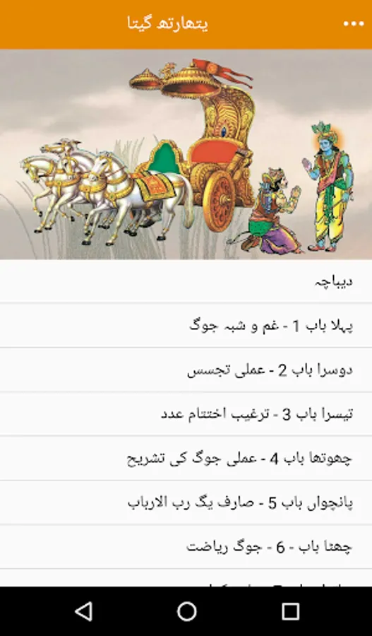 This App allows you to Listen, Read and Download MP3 and Book of Srimad Bhagavad Gita verse by verse with explanation in Urdu Language.