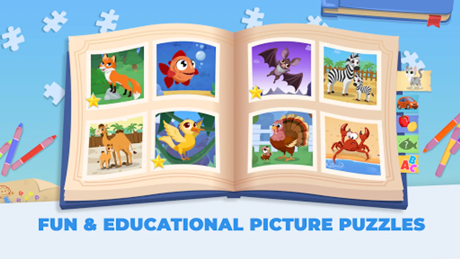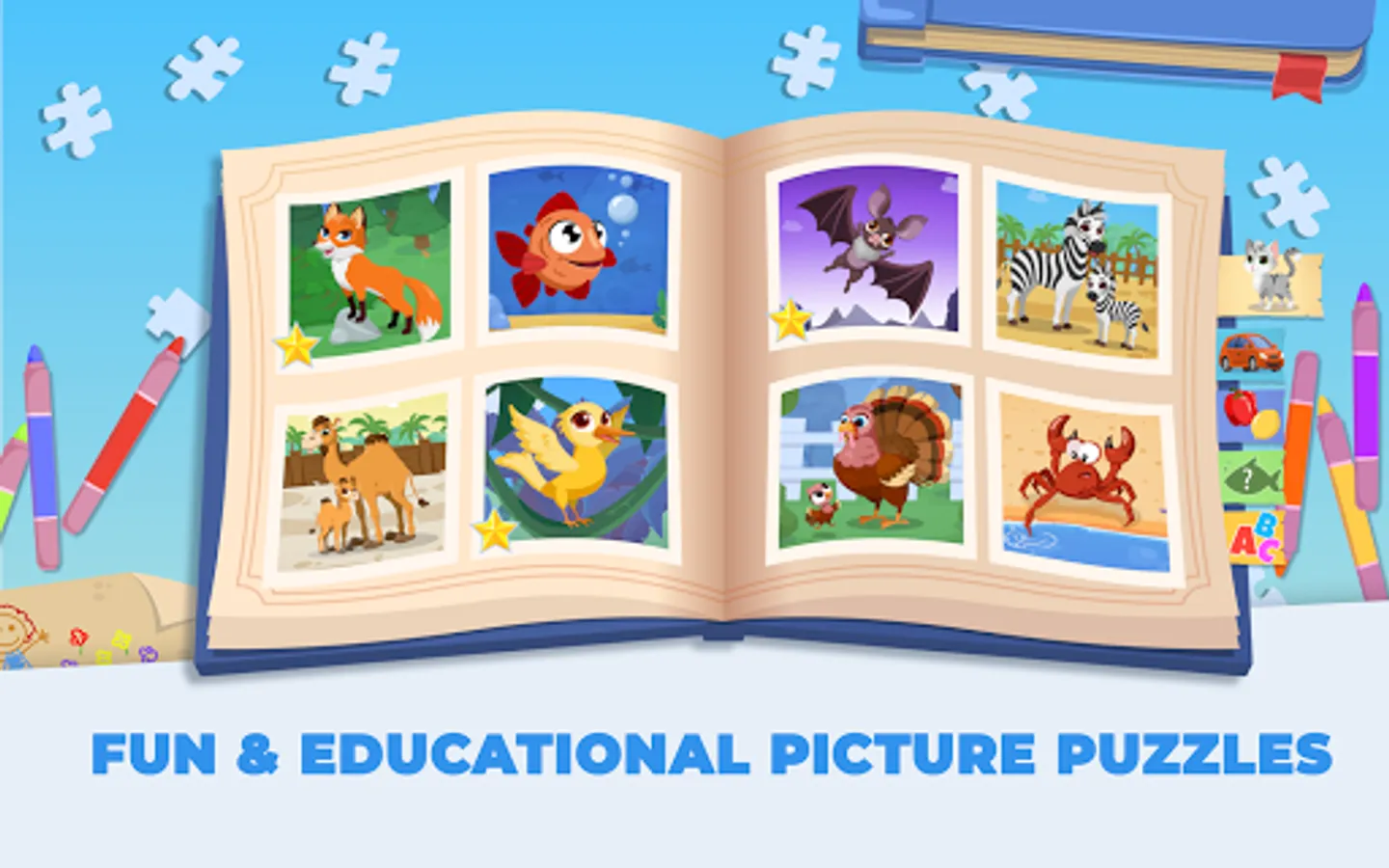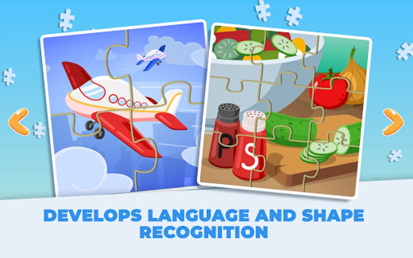 - Kids jigsaw puzzles: Your toddler is supposed to arrange the jigsaw puzzle pieces together to match the jigsaw.