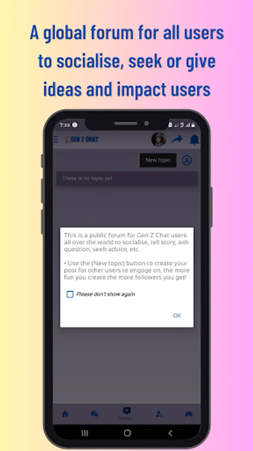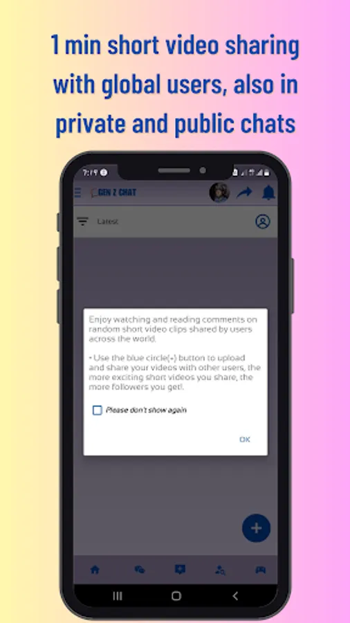 Gen Z Chat enables you to chat privately or publicly, create and share short videos, make new friends, play games, hang out online and much more with people from different parts of the world.