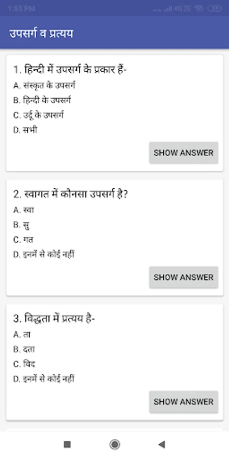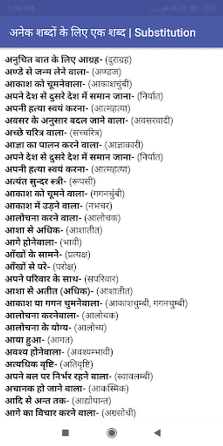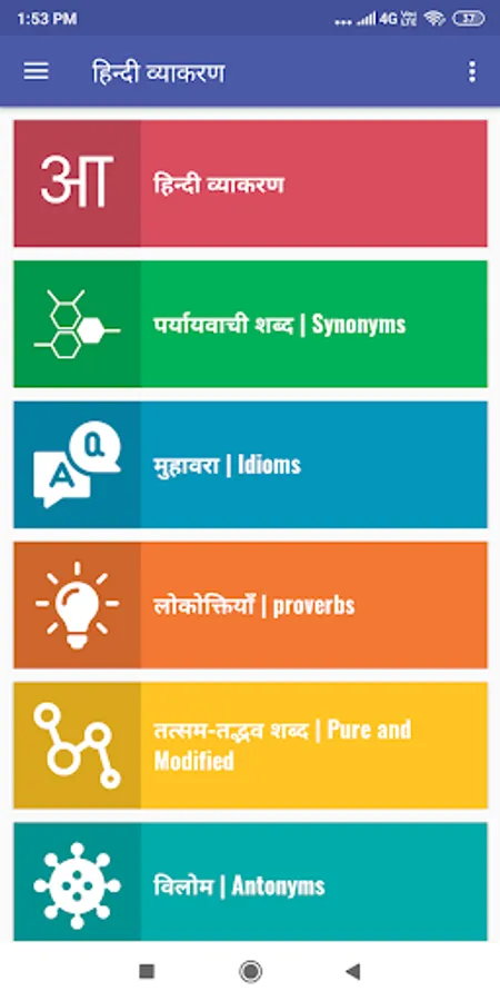 This General Hindi Grammar App is sufficient Study Material for All Students who are keen to get commend over Hindi in Exams. General Hindi Grammar app will also help you in various Hindi exams. It will be also useful for people searching for government jobs or for are preparing for any entrance exams.