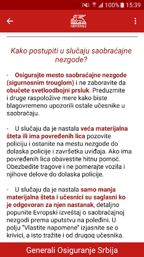 • Allowed direct call and e-mail to Generali Insurance Serbia Contact Center