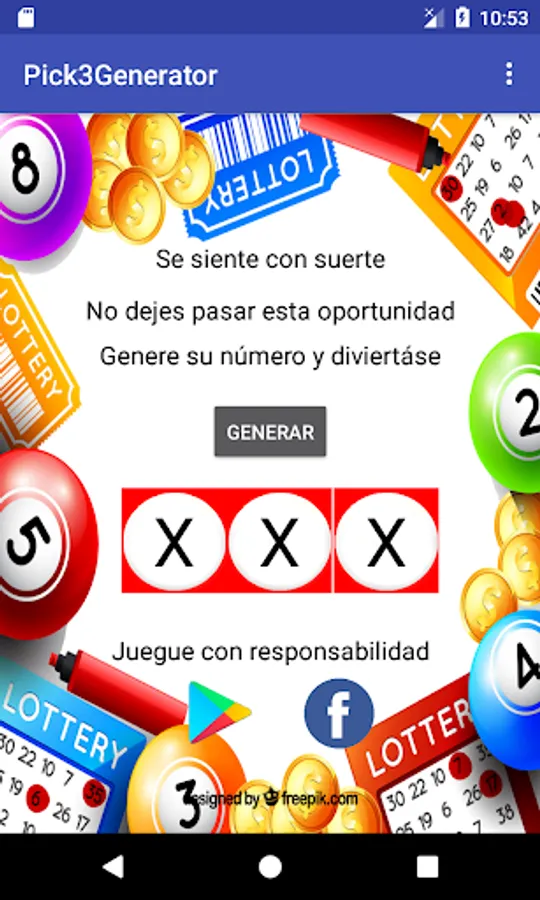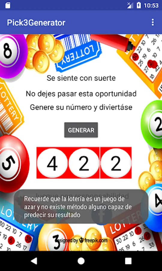 Genera numeros del popular juego de loteria Pick3 y pon tu suerte a prueba