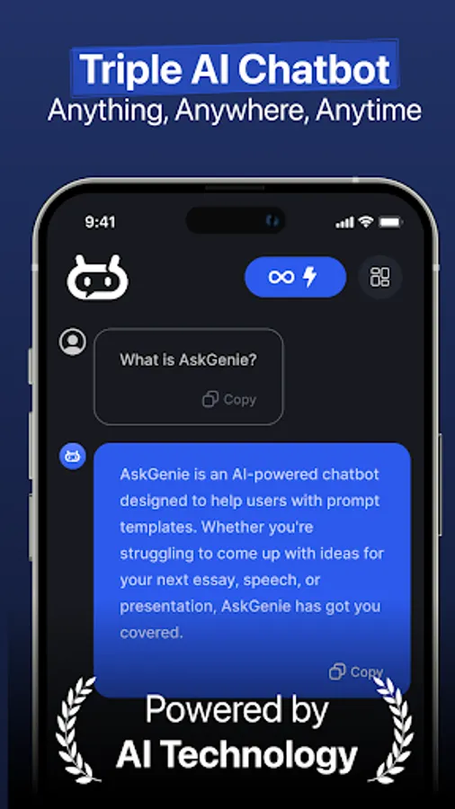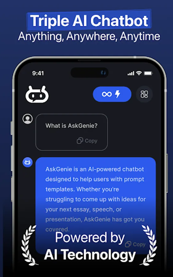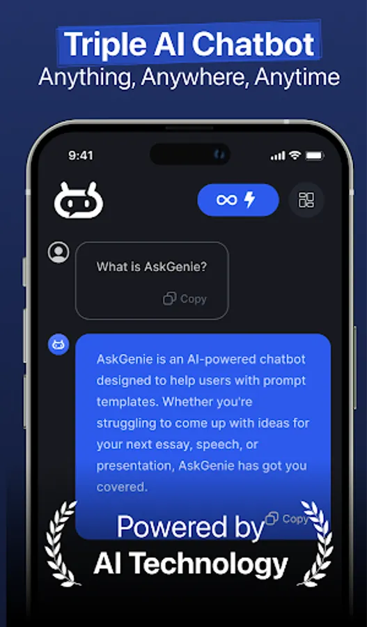 Welcome to AI AskGenie, the groundbreaking app that leverages GPT-3 technology to create a state-of-the-art AI chatbot and writing assistant! Say goodbye to writer's block and hello to endless creativity as AskGenie transforms your thoughts into words. With the power of OpenAI, you'll have the most advanced AI chat and writing assistant at your fingertips, absolutely free!