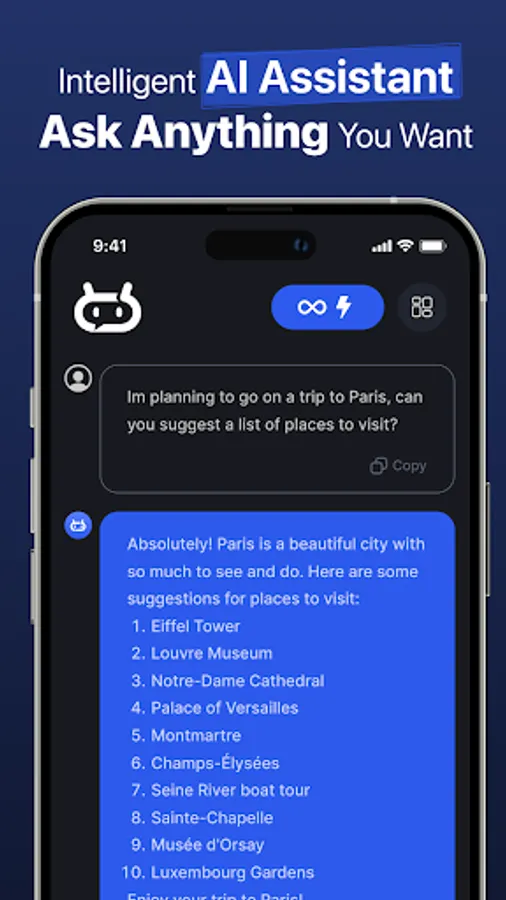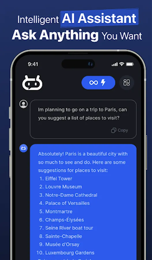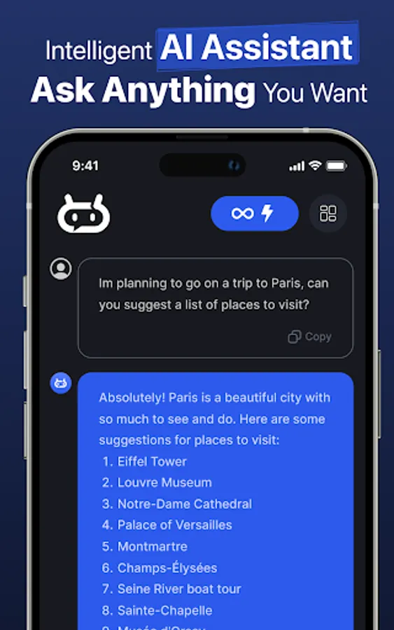 - Free AI App: Get unlimited access to the world of AI chat and writing assistance without breaking the bank!