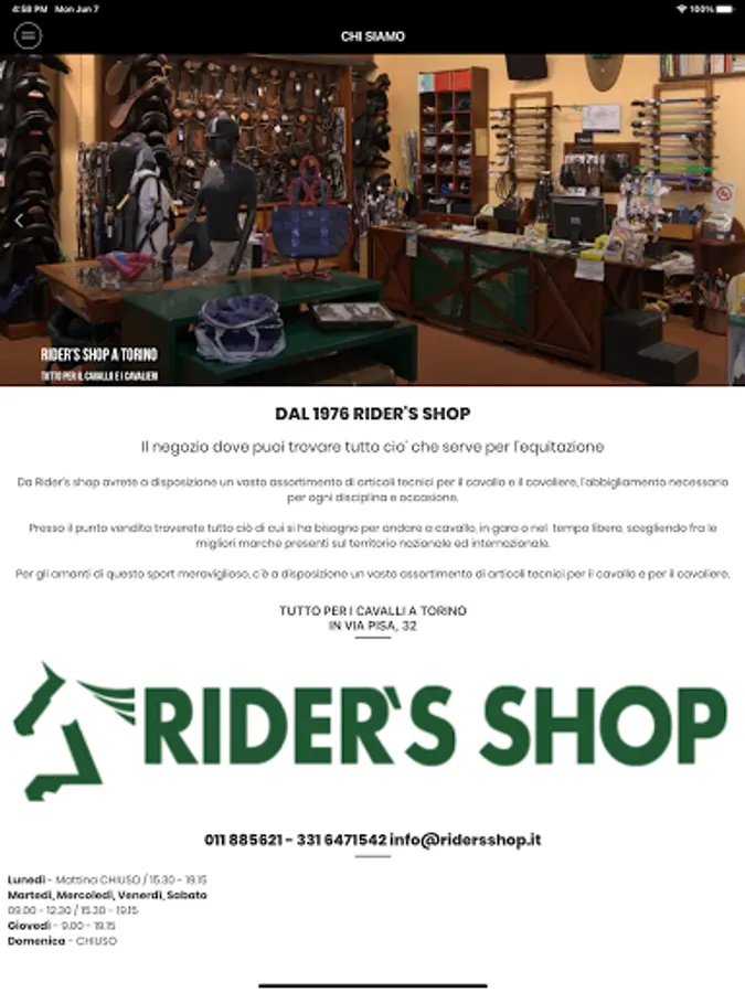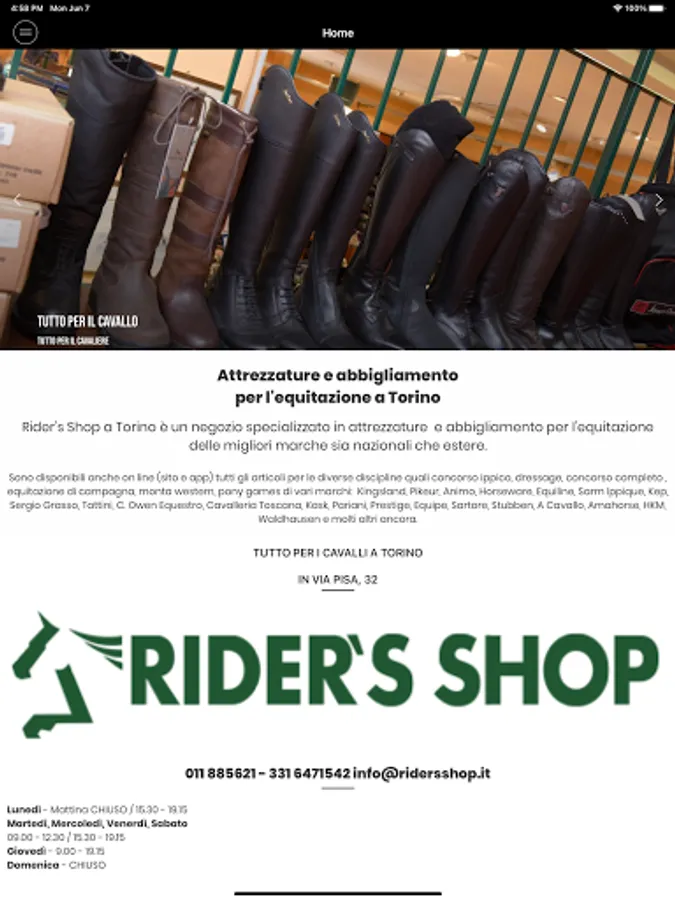 Rider's Shop in Turin is a shop specializing in equestrian equipment and clothing from the best national and foreign brands.