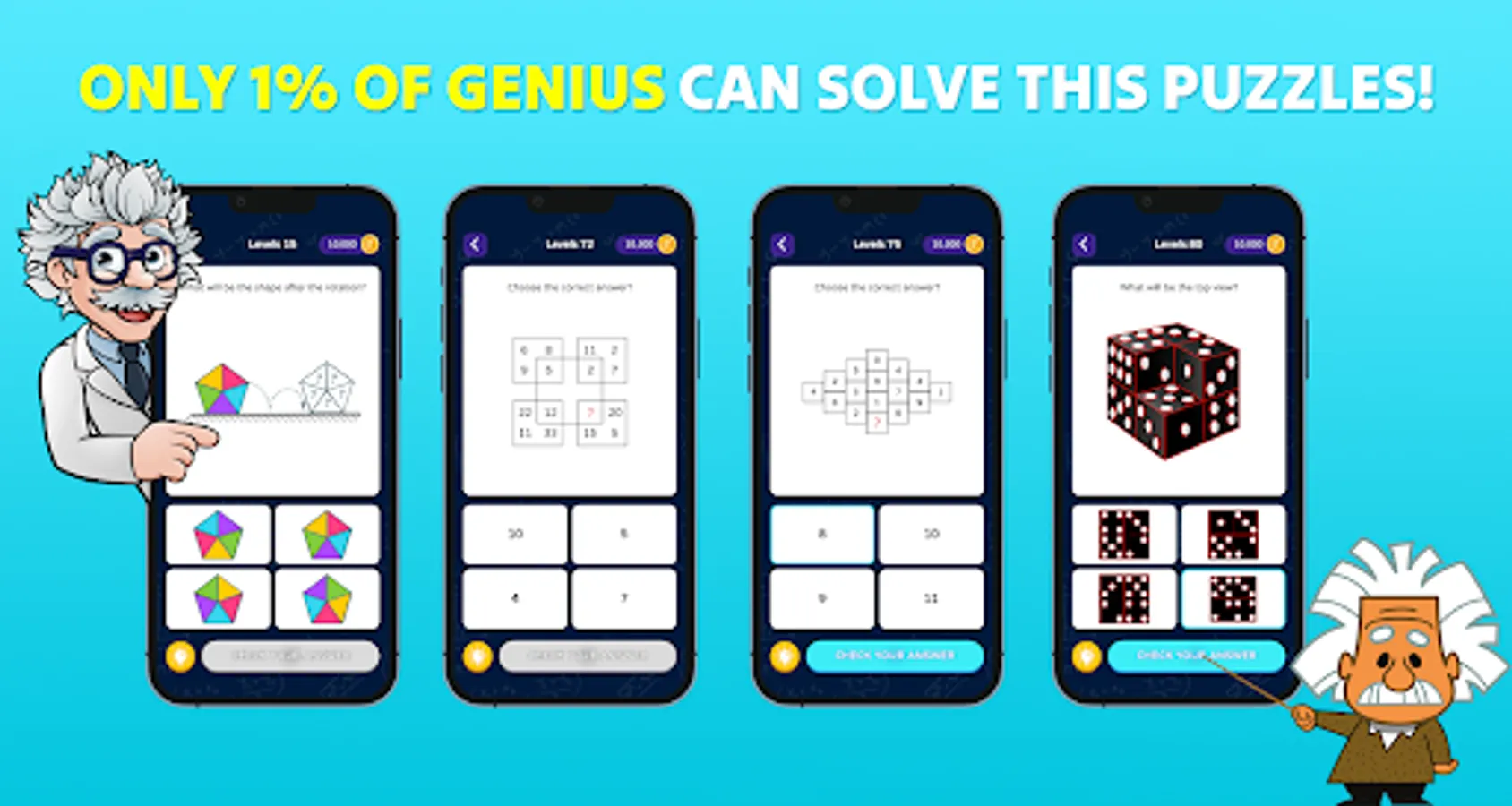 - Test your IQ with nearly 100 puzzles and brain teasers.