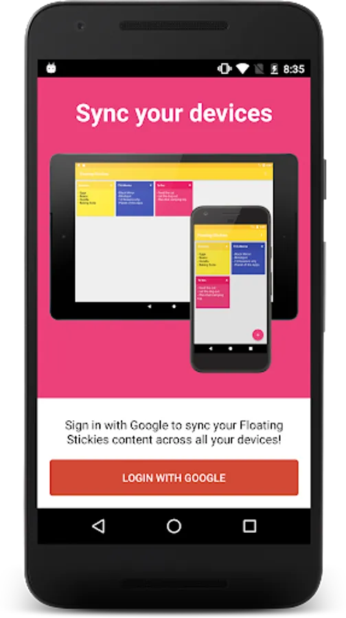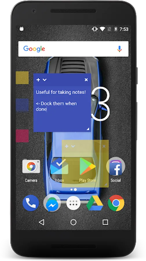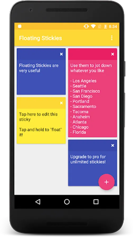 Floating Stickies stay on top of all other apps, and allow you to quickly jot down notes for easy access from anywhere! Easily dock your stickies by dragging them to the left side of the screen. All stickies are auto-saved, and can be accessed through the app.