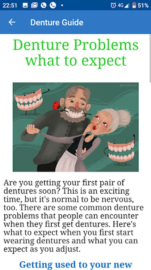 This guide talks also About the different types of dentures, dentures problems and their solutions , A guide to clean your dentures and how to Caring for Dentures with explanation and illustartions.