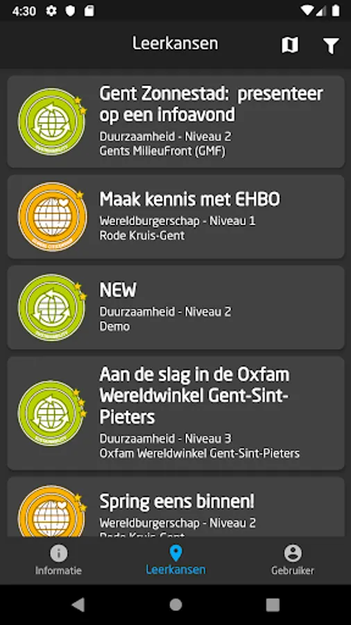 Gentlestudent provides an application and web platform that encourages students to learn informally through a range of learning opportunities in authentic settings. These learning opportunities can be found on the basis of beacons that are available at certain locations in Ghent. Upon successful completion of these learning opportunities, students can make their acquired skills visible through the Open Badges issued by the platform.
