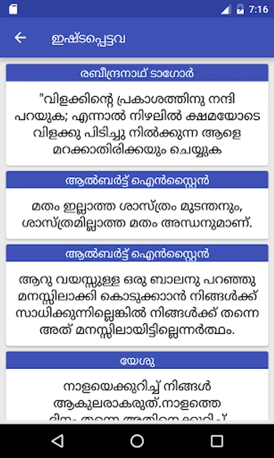You can also mark a quote as liked to get it later with a single click on "ഇഷ്ടപ്പെട്ടവ" category.