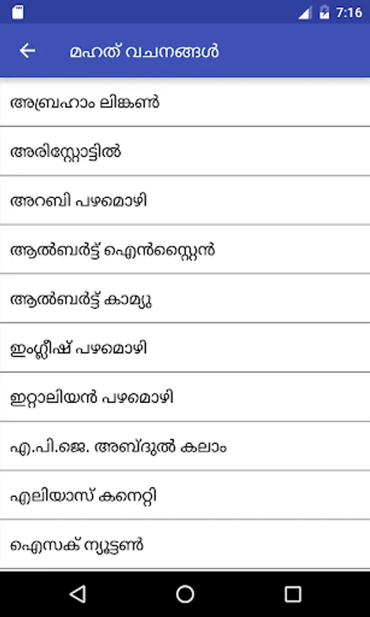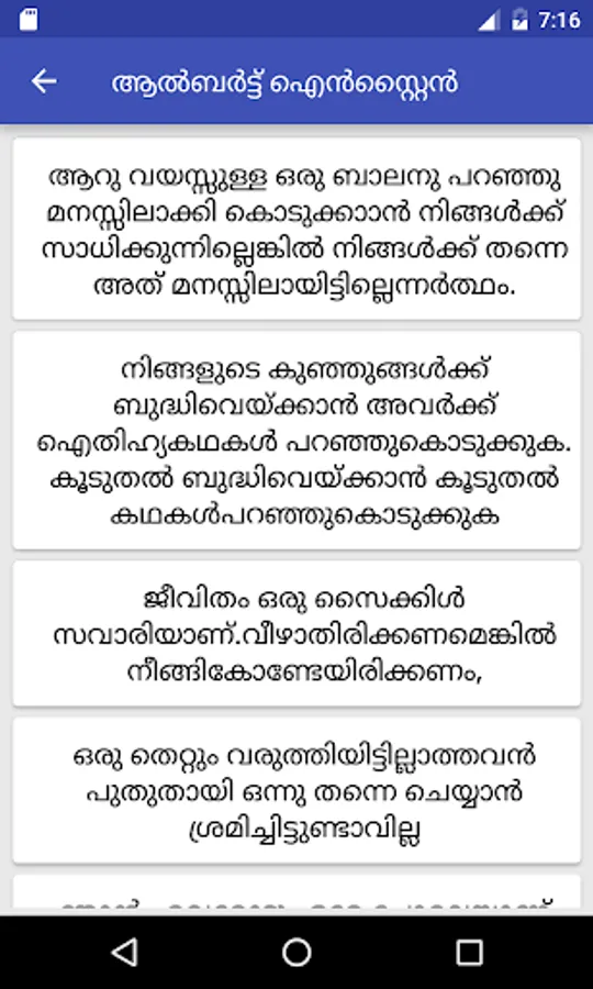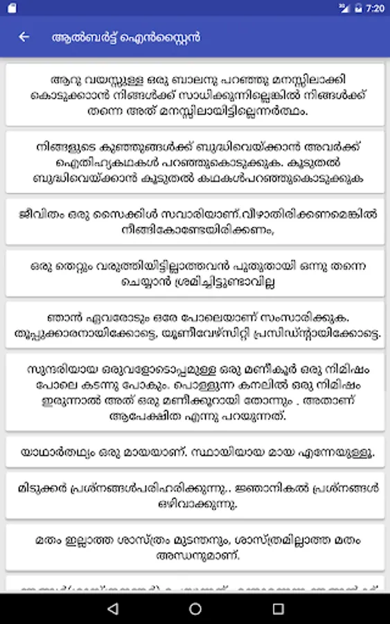 Malayalam Quotes(Mahad vachanangal) provides a collection of quotes from famous people. We have included a widget that allows you to bring the quotes right in to your home screen.