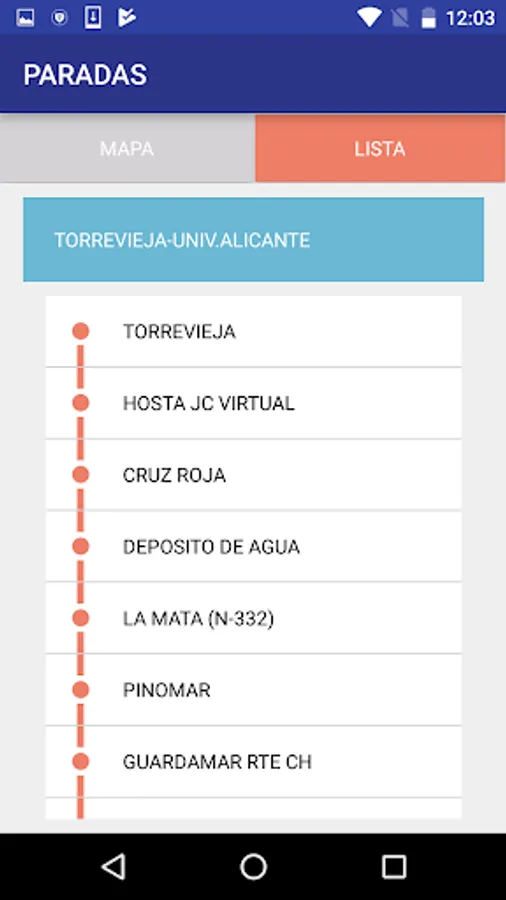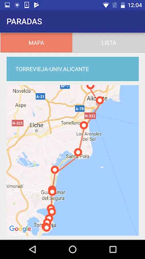The application provides information on bus lines used by school children and university bus lines, detailing his travels and stops schematically or on a map, and giving the estimated actual waiting times.