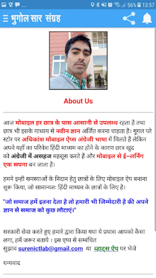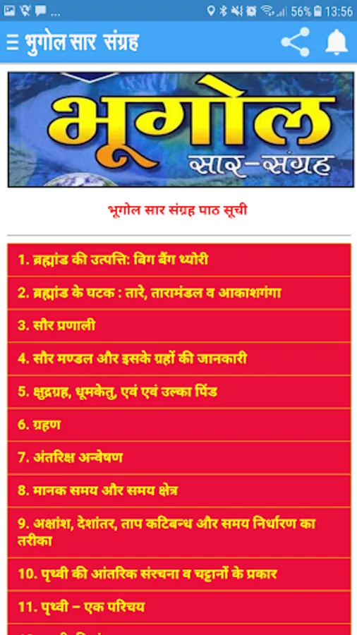 If you are in major B.A (Geography) or M.A (Geography), you could refresh your knowledge with this app. As well if you are preparing for any competitive exams, SSE, PSC, Staff-selection, Entrance exams that need Geography knowledge, this app shall be highly helpful.