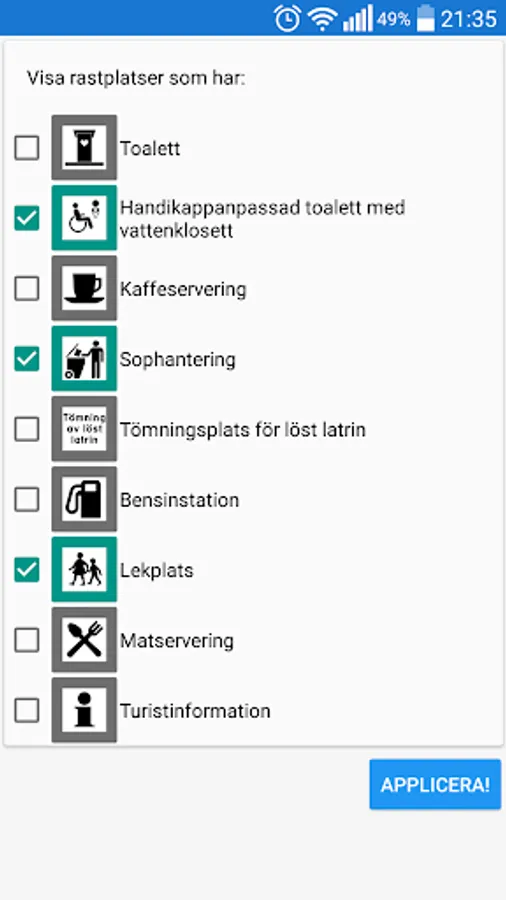 Good rest stops invite to the necessary stops for rest and recreation. Tiredness at the wheel is a common accident factor almost comparable to accidents related to alcohol. So if something does not agree with the way it should be, if you experience any problems at the rest area, please report to geoinfo.apps@gmail.com and / or directly to the Finnish Transport Agency's customer service (Tel: 0771-921921).