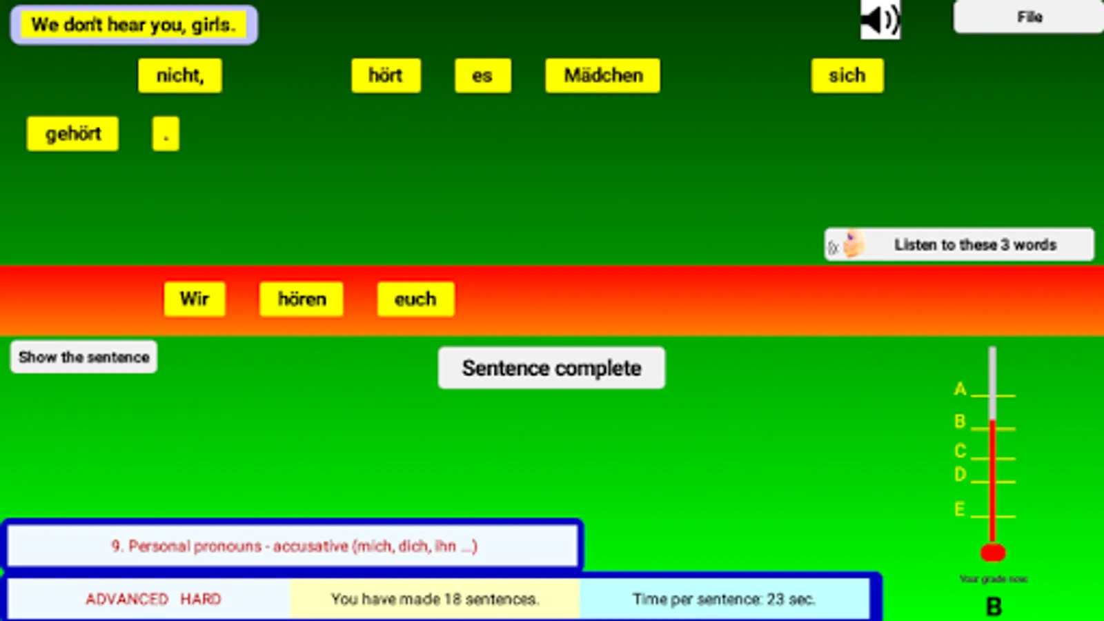 Learn German grammar in a way you’ve never tried before. A German lady reads out all the words and sentences. You learn a lot without noticing it. Very efficient and it’s fun too,