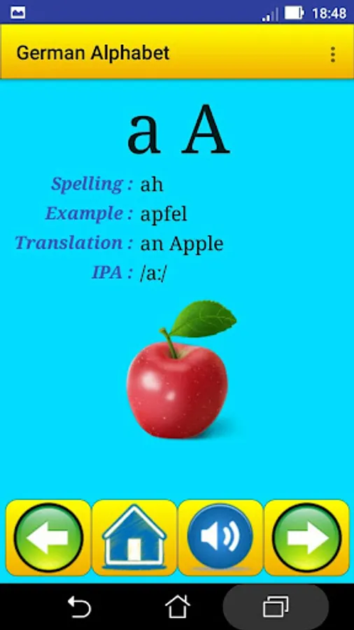 This app contain all German alphabet , exactly 30 letter , it help strangers students in German universities , for learning and speaking the alphabet and the pronunciation .