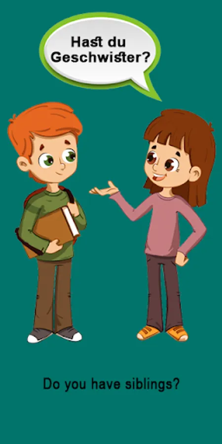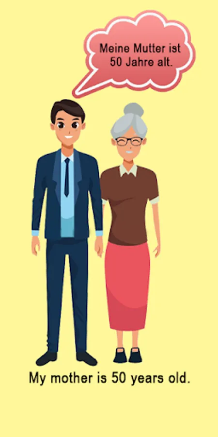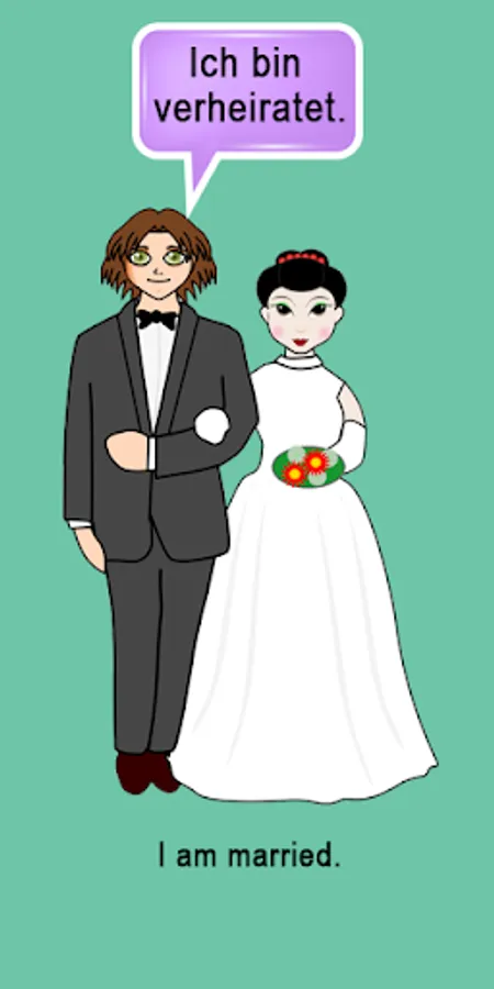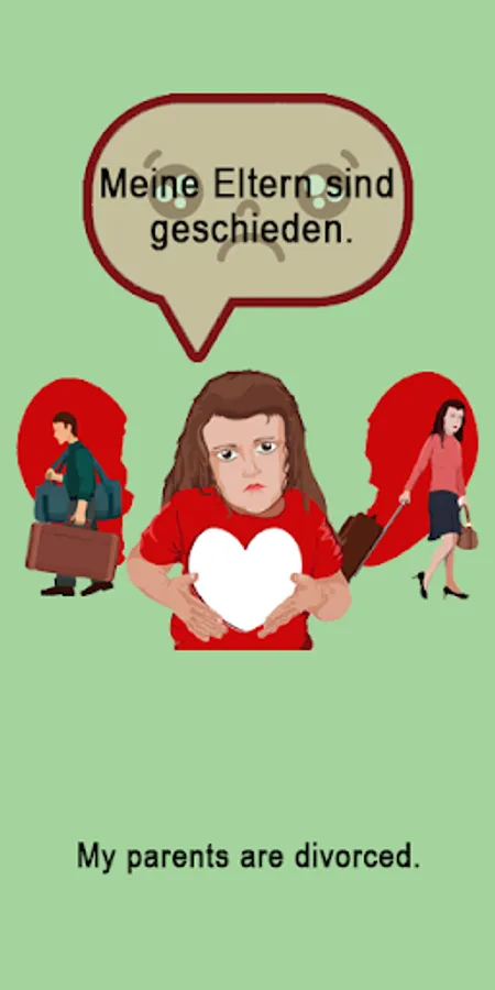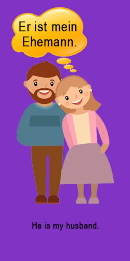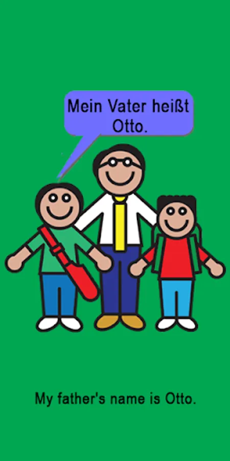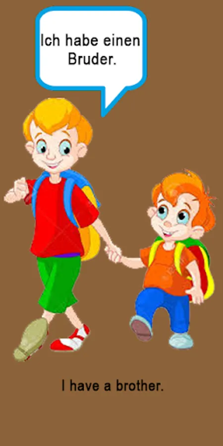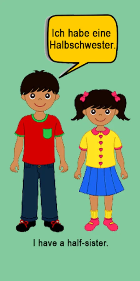 Some formal and informal sentences in German language about family with colorful and interesting clip-arts. English translation of each sentence is provided in the bottom of every image.