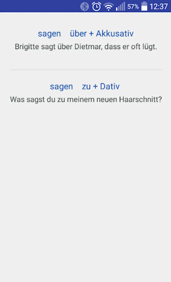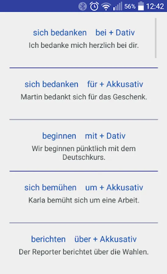 Bei jedem Verb steht, mit welchem Fall die zugehörige Präposition verwendet wird. Außerdem gibt es zu jedem Verb einen Beispielsatz. Suchen Sie nach einem Verb mit der Suchfunktion .