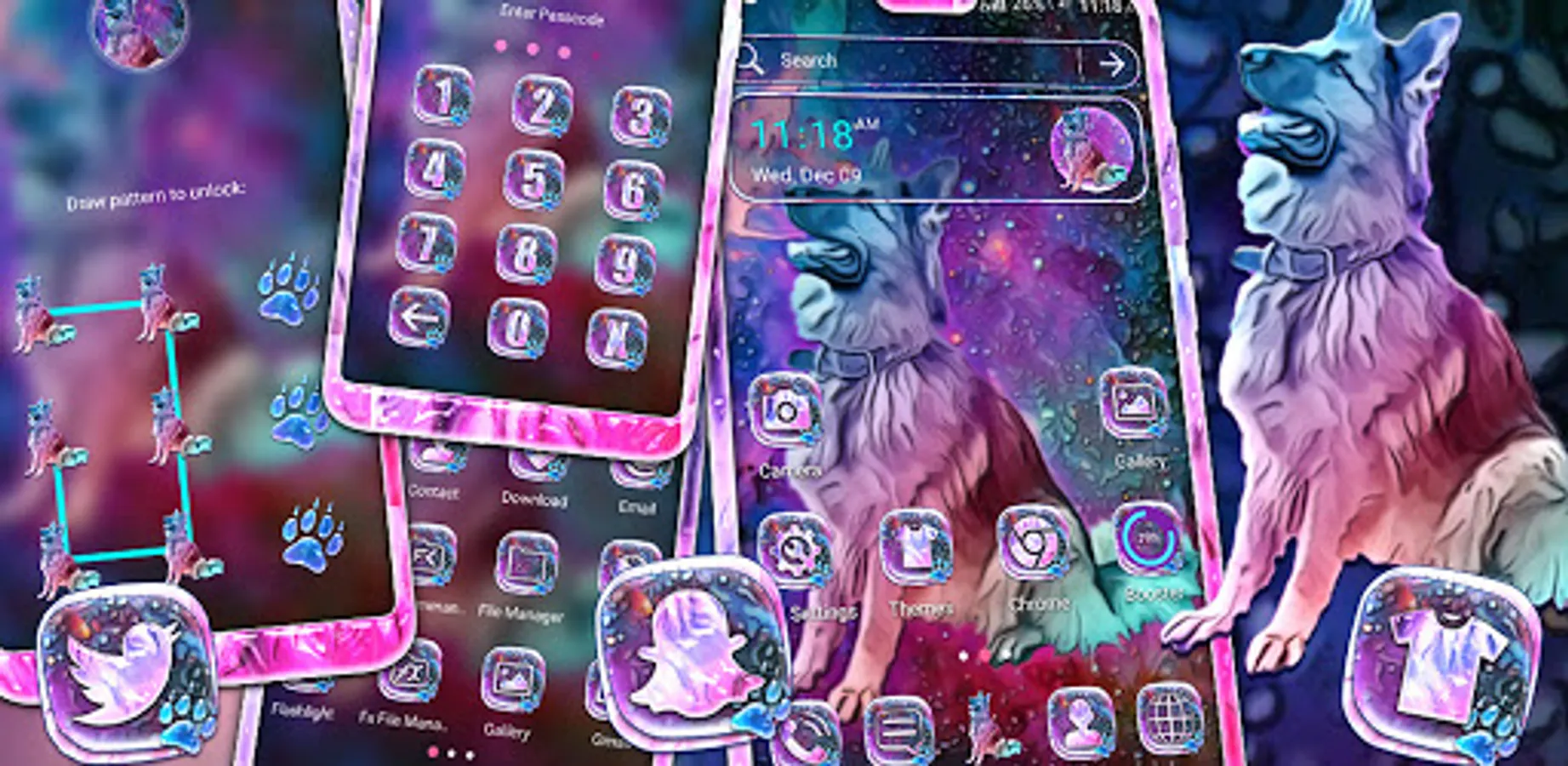 The smooth and attractive redesigned app icons and other visual elements of this German Shepherd Launcher theme will change the way your smartphone looks. You can even use an awesome Colorful Dog wallpaper for your phone, which will give your device a fantastic new look.