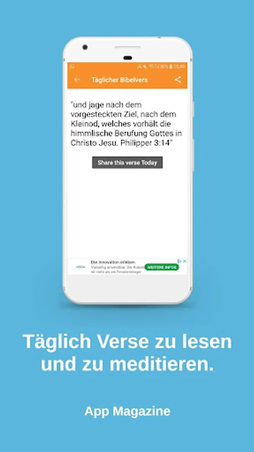 4. Tägliche Bibelverse und die Verse mit Freunden teilen. Diese täglichen Bibelverse können als die Erinnerungsverse für jeden Tag dienen. Sie können eine Benachrichtigungszeit für Ihre täglichen Bibelverse bestimmen.