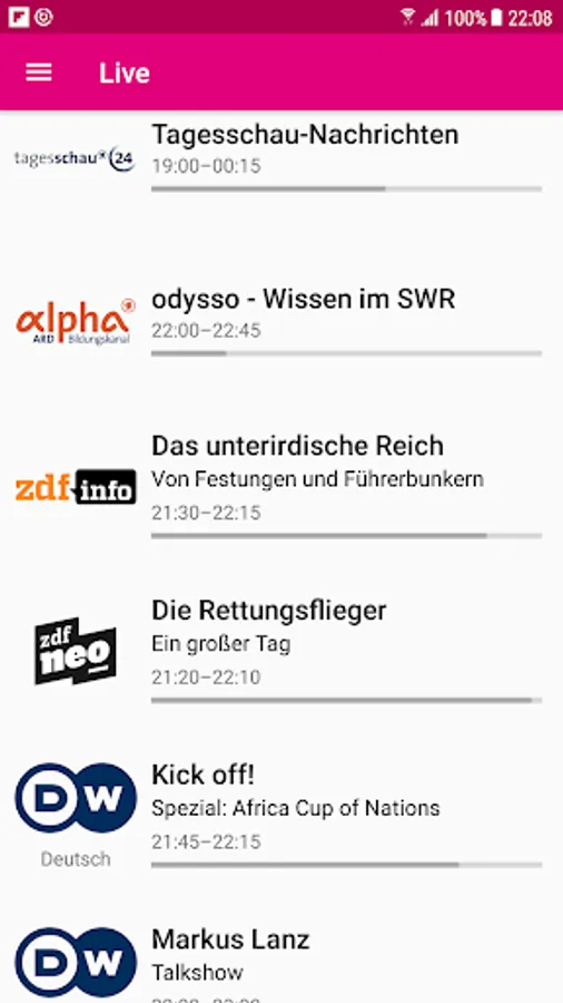Mit der neuen Das Erste App kommen Sie noch leichter an Ihre Lieblingssendungen und Videos. Der neue Programmkalender vereint Programmvorschau, Livestream und Videos zu vergangenen Sendungen auf einen Blick. Redaktionelle Highlights und persönliche Empfehlungen finden Sie geordnet und übersichtlich auf der Startseite. Videos finden Sie schnell und leicht über den Programmkalender, über ein A-Z und über Rubriken wie Dokumentationen, Filme, Krimis, Nachrichten, Kinder, Ratgeber oder Kultur und Wissen.