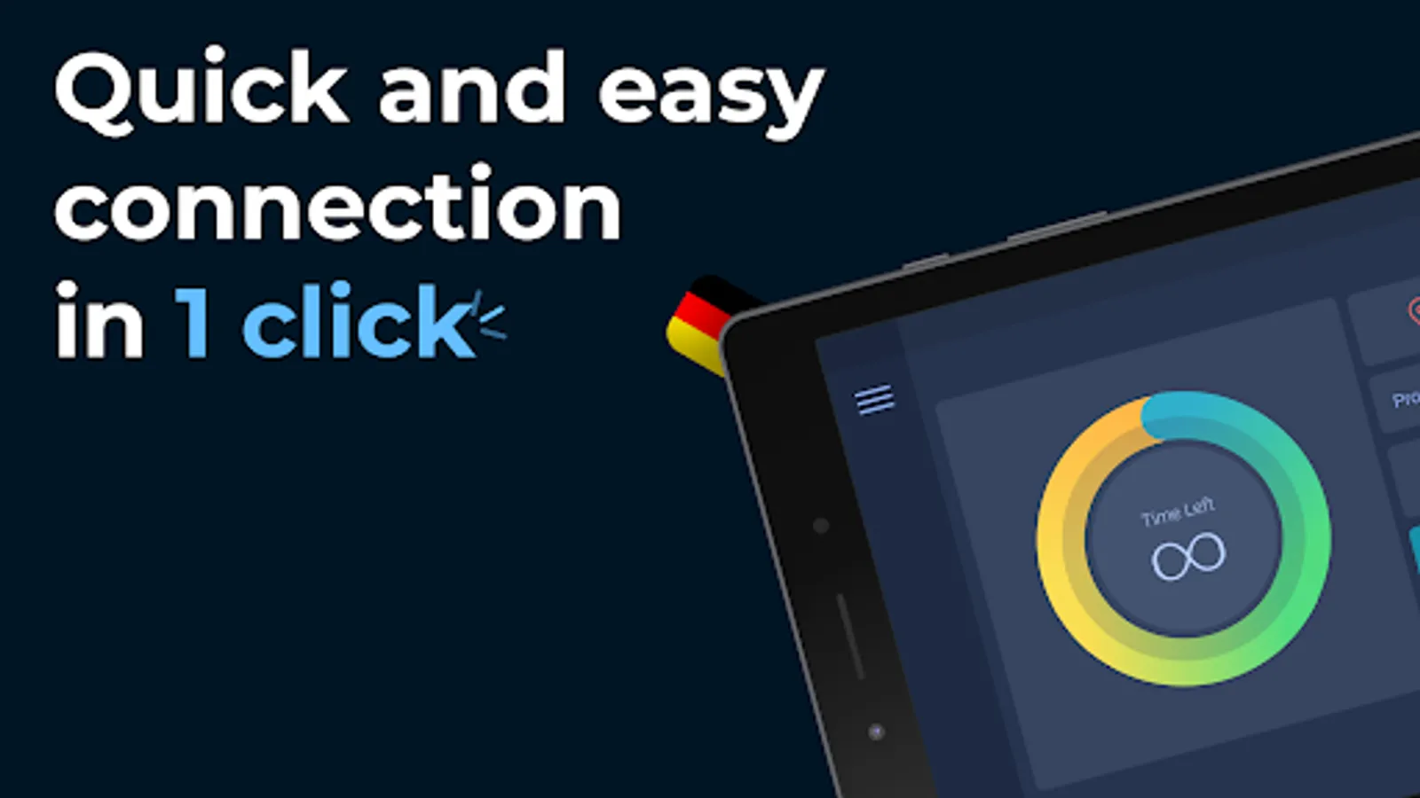 + For your convenience, we introduced two separate connection buttons. The first connects to a selected VPN in the list. The second connects directly to a German VPN. It's that simple. In case you need to change IP address, just select a server in some other country and establish a connection. In case you need to get a German IP address, just connect to a German VPN server in one click.