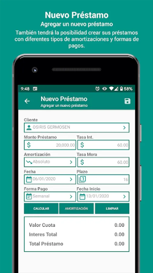 - Loans can be Daily, Weekly, Biweekly, Monthly.