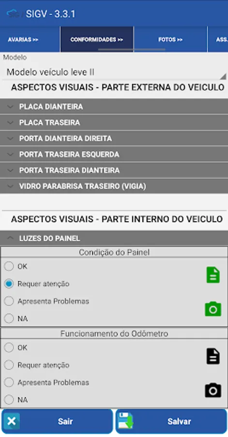 • Digital checklist with the possibility to take a photo and insert a comment