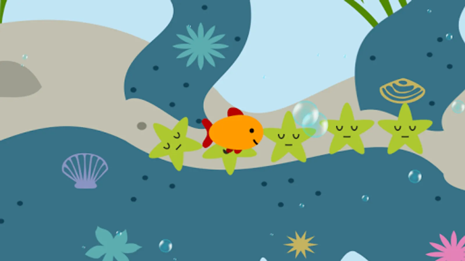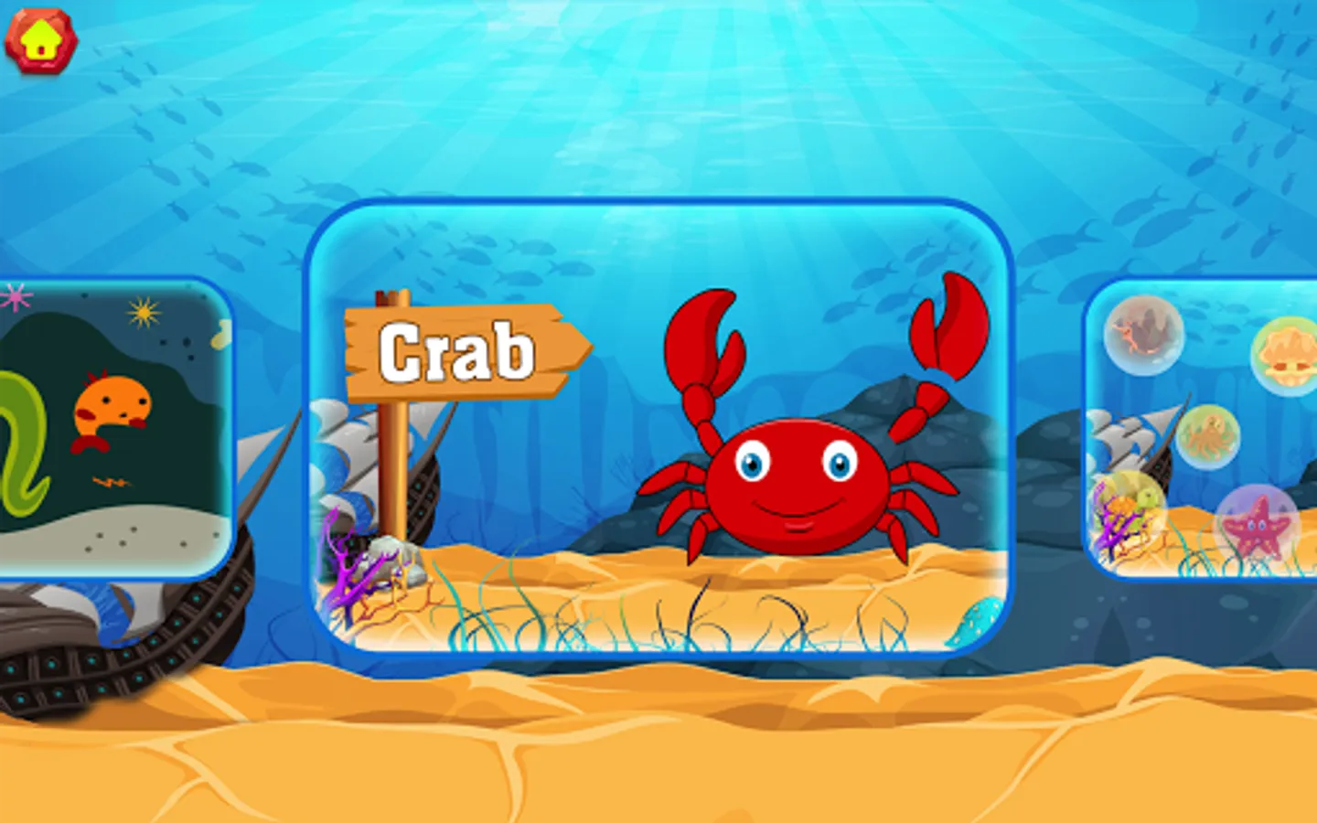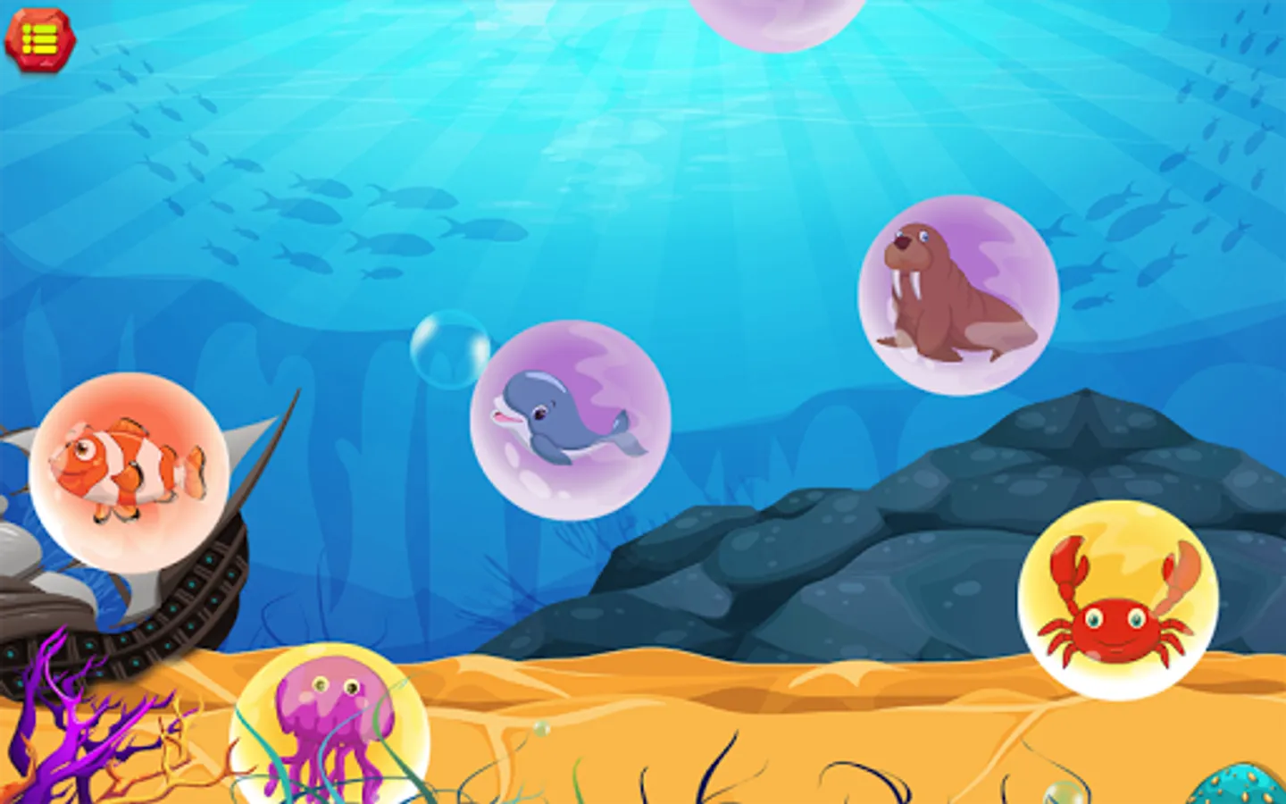 The children will control a goldfish go explore the ocean, and have multiple stops for kids discover: whale, submarine, shark, lobster, crab, octopus, squid, son, electric eel, turtle .......