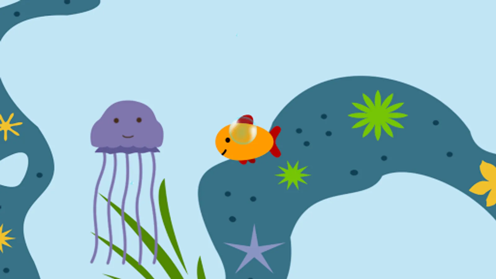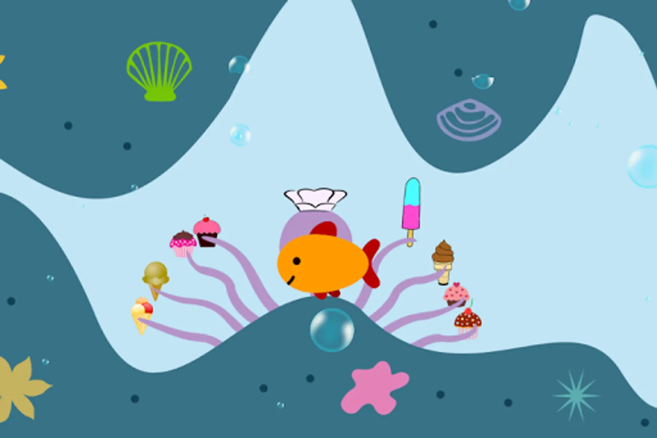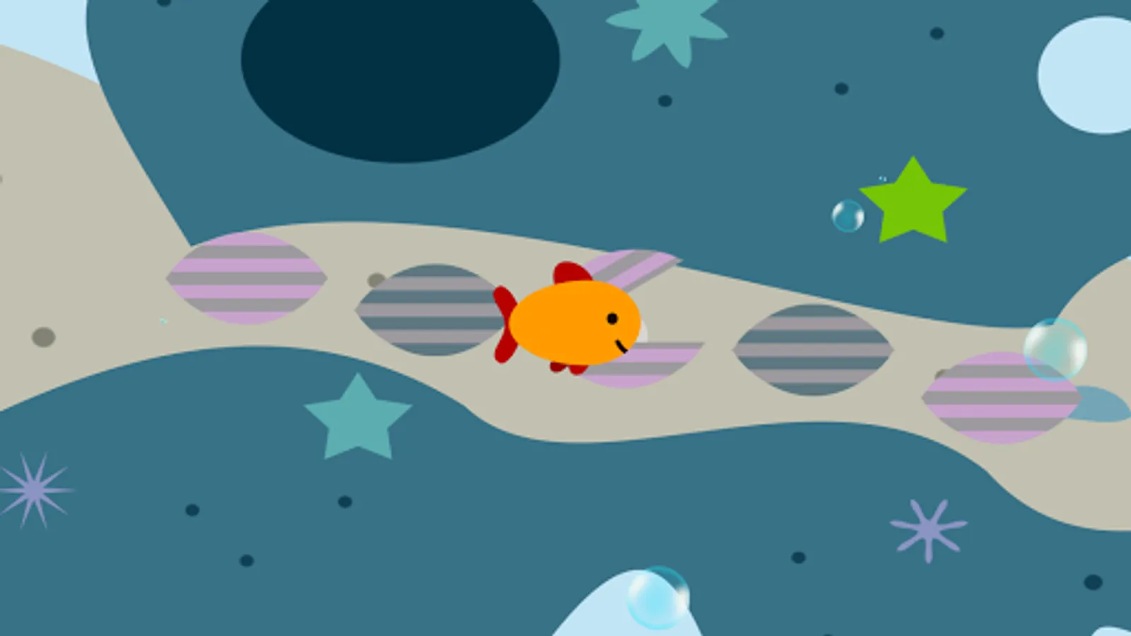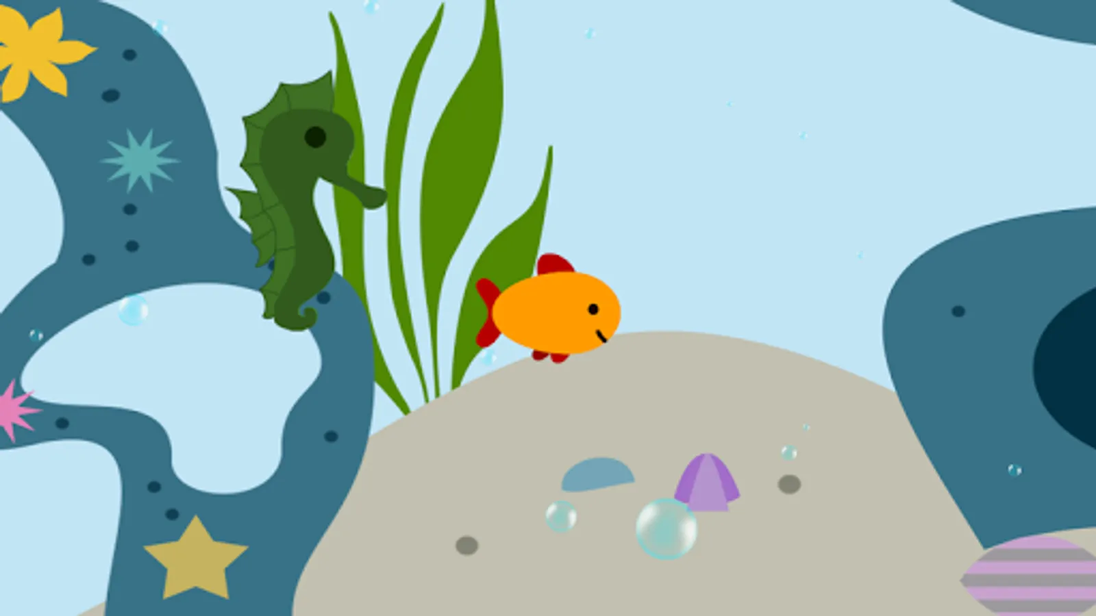 The children will control a goldfish go explore the ocean, and have multiple stops for kids discover: whale, submarine, shark, lobster, crab, octopus, squid, son, electric eel, turtle .......