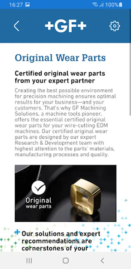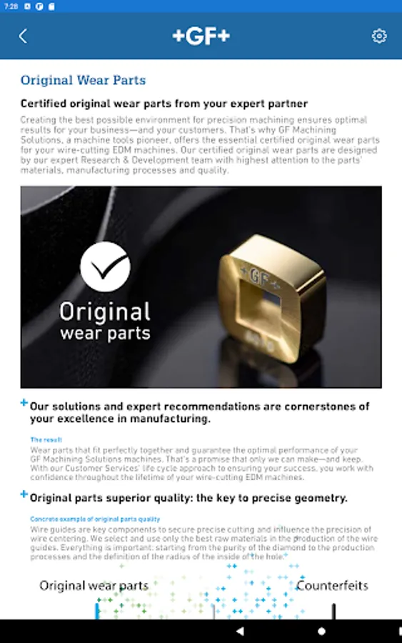 Discover the portfolio of certified wires and original wear parts from GF Machining Solutions that will allow you to operate you machine at peak precision and performance. Products offered by GF Machining Solutions will allow you to reduce your production costs thanks to higher performances and lower non quality costs.
