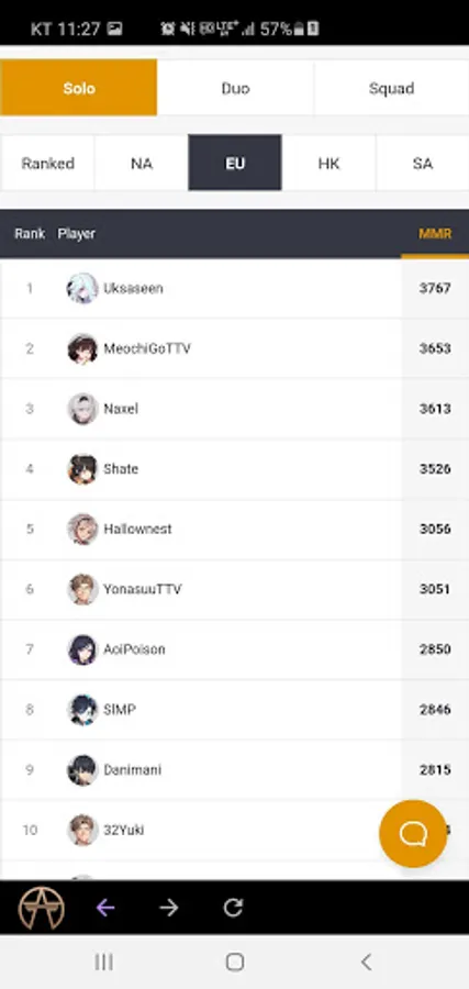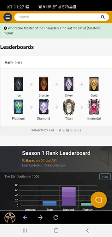 Masters shows player list, who plays specific character many times and has great rank tier.