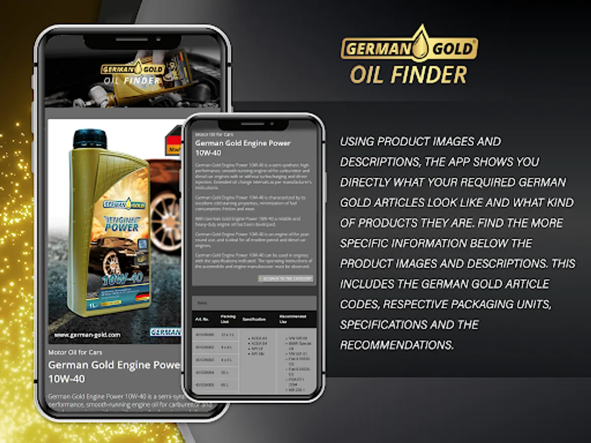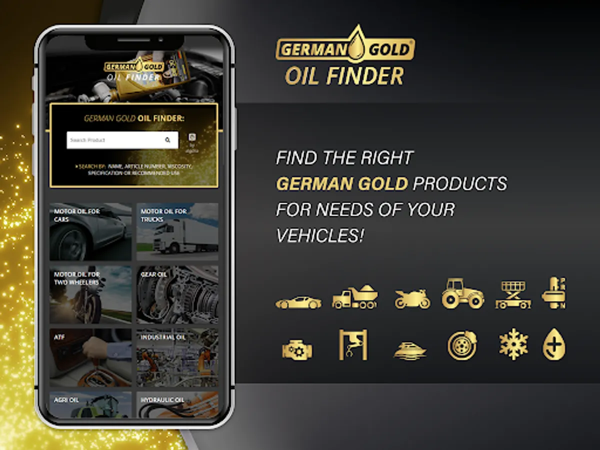 The German Gold Oil Finder App is your tool to find the right German Gold products for the needs of your vehicles.