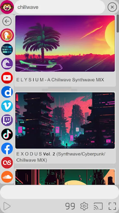 MotionMonkey supports BitTorrent, TMDB, Youtube, Dailymotion, Vimeo, Twitch, TikTok, Facebook, Odysee, Last.fm and SoundCloud. All of this while serving the end user at all time.
