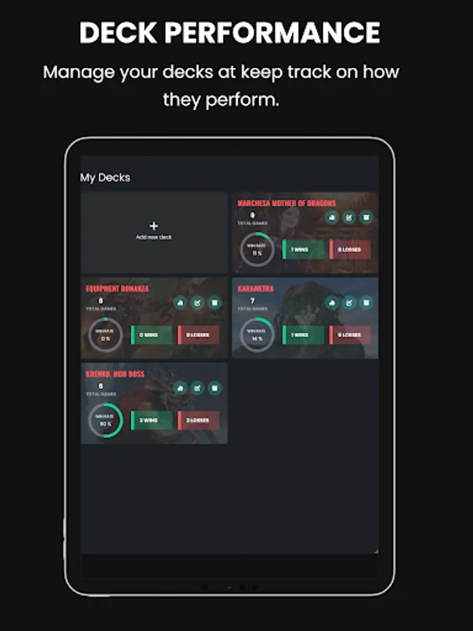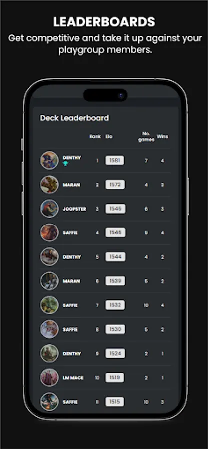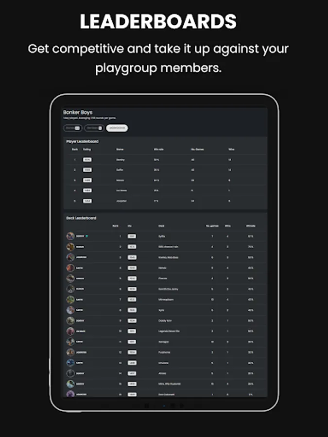 + Leaderboards: Get competitve, and rank against your playgroup members with the deck or player leaderboards.