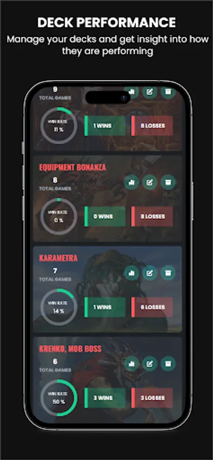 + Personalised stats: Get detailed statistics about your deck's performance. See the power level, win rate, elo rating, average kills per game, largest kill & win streaks and much more.