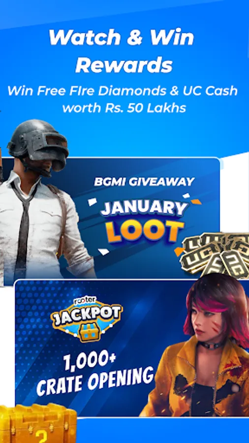 If you are into multiplayer games like Free Fire, BGMI(Battlegrounds Mobile India), PUBG (Player's Unknown Battlegrounds), Fortnite, Among Us, Minecraft, Destiny 2, Apex Legends, GTA V (Grand Theft Auto V), Clash Of Clans, Clash Royale, Brawl Stars, Chess, Skribble, FIFA, etc. the Rooter Live Gaming & Esports app is going to make your gaming experience way better!