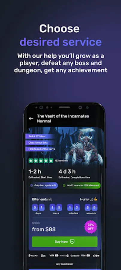 And many others exist on this game boosting app. A large selection of SkyCoach are for WoW and Destiny 2. The app offers various options you can pick from. You can expect to get anything from Powerleveling to mounts, gold, and many other additional boost options. Some of the finest examples are the traditional Raid, Gear, and Dungeon Boosts, and there are some interesting ones like Reputation Boosting.