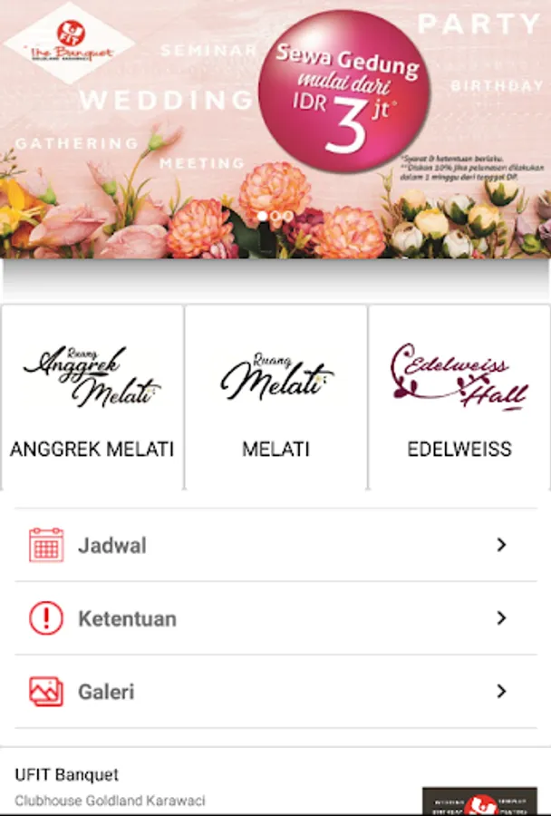 3. Ufit Banquet: Facilities, Gallery, Online Booking, Check Schedule, Attractive Promos.