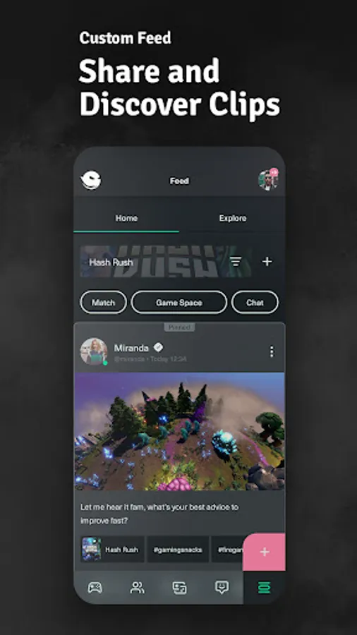 2. Your Home feed on Wasder is 100% tailored to you. Stay on top of what’s going on in the games you love to play. Did you clip an awesome moment? Share it, tag it and show it off to the community. Switch from the home feed to the explore feed at any given time to discover Wasder completely unfiltered.