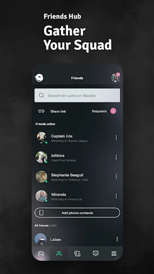 4. It’s easy to gather your squad on Wasder thanks to your Friends Hub. Once added to your hub, your friends are just one tap away from hanging out. Hope you’re ready to explore the world of gaming with your friends. And maybe even take out some enemies together (Friendly fire might be on, we’re unsure).