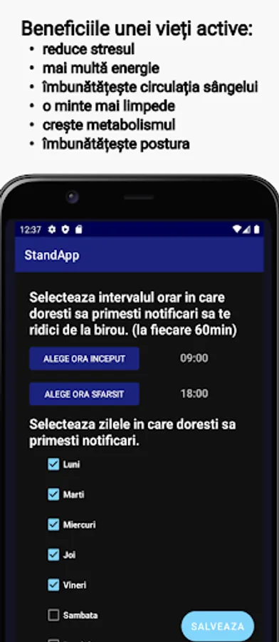 We're made do be active. StandApp helps you in having an active live by encouraging you to stand up and move around when being sedentary.